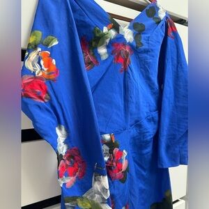 ZARA TRAF S/S 24 Hand Dyed Blue Floral Chinoserie Dress Draped Long Sleeve Sz M