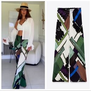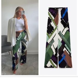 ZARA TRAF abstract print green Multi Wide Leg Pants. Size XS NWT