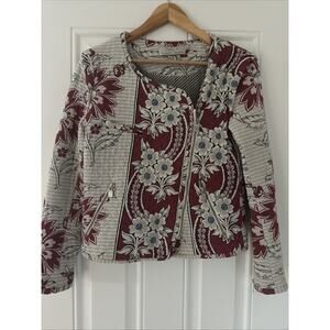 ZARA TRAFALUC BLAZER PRINTED FLORAL Zip QUILTED CARDIGAN WHITE RED JACKET COAT S