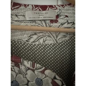 The Zara Trafaluc Blazer in Printed Floral design is a stylish and trendy jacket in white and red colors. With a zip closure and quilted accents, this short-length blazer features long sleeves and pockets for added functionality. Perfect for those who love a bohemian style with a floral theme, this blazer from Zara is a versatile piece that can be dressed up or down for any occasion.