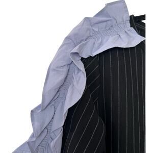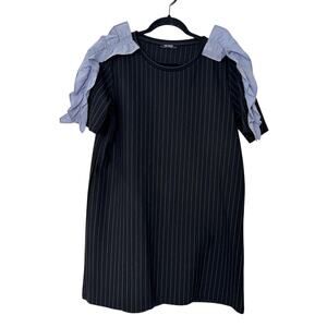 ZARA TRAFALUC Black Pinstripe RUFFLE SLEEVE TUNIC DRESS SZ L