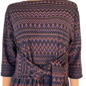ZARA TRAFALUC Knit Midi Dress Chevron Aztec Ties at Waist Size: Small oversized