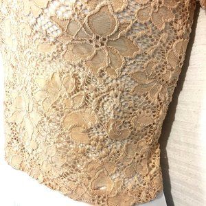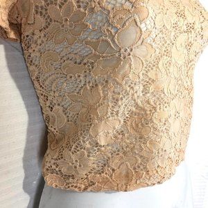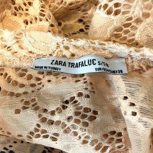 ZARA TRAFALUC Peach Floral Lace Crop Top Shirt ~ S