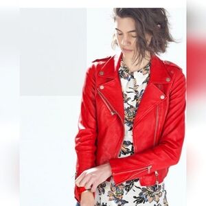 ZARA TRAFALUC Red Moto faux leather jacket. Size XL