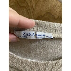 ZARA TRAFALUC Women's Beige Ivory Pearl Beaded Crop Blouse Oversized Size Small