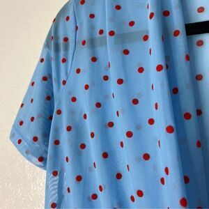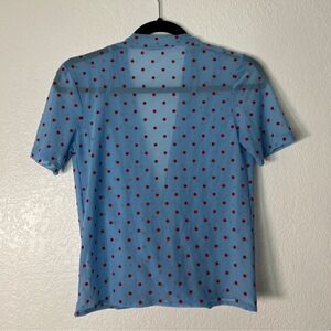 ZARA TRAFALUC baby blue red polka dot semi sheer mesh retro top S B18