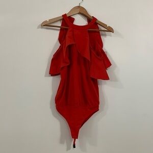 ZARA TRAFALUC size 6 orange off shoulder bodycon blouse