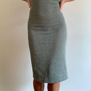 ZARA TRAFALUC Knit Midi Dress Size S. It’s in excellent condition. No flaws. The color is like a grayish with a slight mint green hue.