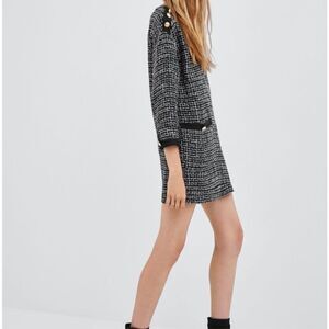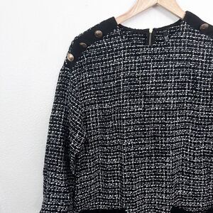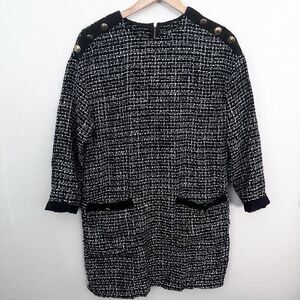 ZARA | TRF Collection Black White Tweed Shift Dress Gold Buttons Mini | Medium
