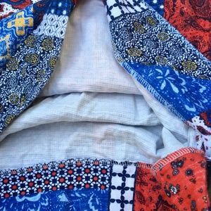 Lightweight quilted fabric. Banded hem and sleeves. Fun handkerchief retro pattern, sunny and fun. Crew neck. Slightly cropped.Boxy, relaxed fit. Longish sleeves.