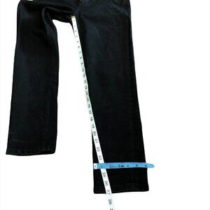 ♡Women's size: US4, Black. Zip & button closure, Traditional 5 pockets, Straight, Distressing, No care/material tag, Pre-loved item looks in good condition to me, please be aware of some natural wear and distressing. See descriptive photos for approximate measurements, condition, No care/material tags. Photos of model are for approximate fit & style. Thank you! ♡