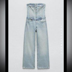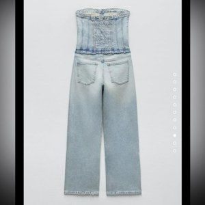 ZARA TRF STRAPLESS DENIM JUMPSUIT