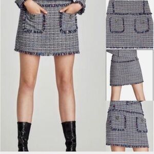 ZARA TWEED GEM APPLIQUE FRINGE MINI SKIRT SIZE Medium