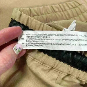 ZARA Tailored Dress Pants Relaxed Fit Khaki Tan Faux Leather Detail Drawstring Women Small