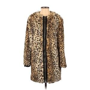 ZARA Tan Brown Faux Fur Animal Print Coat Jacket - S