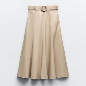 ZARA Tan Faux Leather A Line Skirt NWT