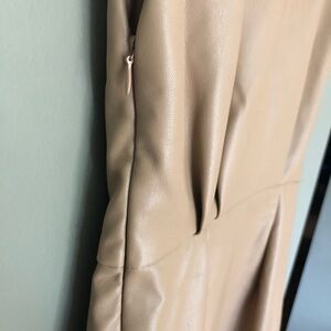 ZARA Taupe Faux Leather Mini Dress With Shoulder Pads Size XS EUC