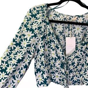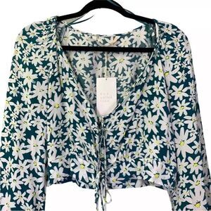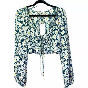 ZARA Teal Daisy Floral Print Crop Top - NWT - Size medium