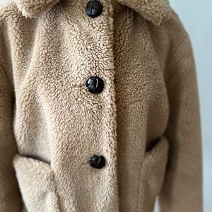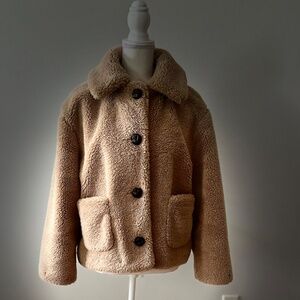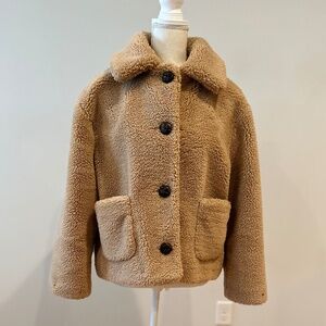 ZARA's “Teddy Bear” short jacket is a fun jacket to wear this season. The jacket has 4 Large brown button closures and 2 Patch pockets. It is fully lined. The jacket was worn only once. Size M