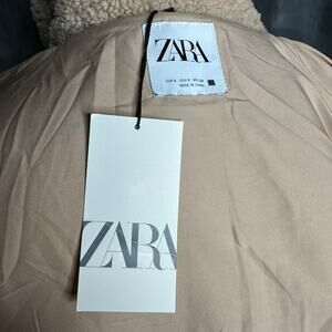 ZARA Teddy Sherpa Bomber Jacket Women's Size Small NWT Tan Brown Cozy Fleece