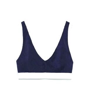 ZARA Terry Cloth 70s Womens Crop Tank Top Bralette Navy White Cut Out V Neck M
