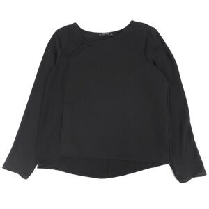 ZARA Textured Crepe Long Sleeve Asymmetric Blouse Flowy Top Minimal Large Black