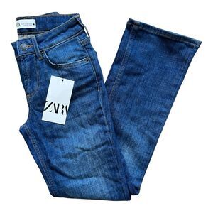 "Rock your style with ZARA's Low Rise Cropped Indigo Slim Fit Flared Leg Jeans! These trendy low waist jeans in size USA 10 are a must-have for fashion lovers. Get your denim game on point! 👖 💙 #ZARA #Fashion #DenimLove"