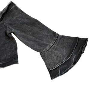 FEATURES: Off the shoulders, crop top, 3/4 sleeves, bell sleeves, double ruffle sleeves, pull over, ruffles, smocked black