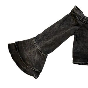 ZARA The Ruffle Blouse Off the shoulders Denim Bell sleeve Pullover Size Medium