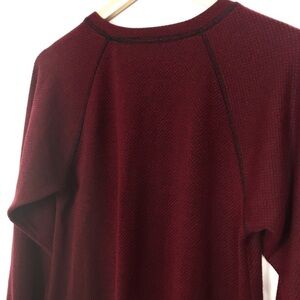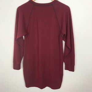 Soft waffle knit long sleeve sweater thermal tunic dress. Maroon color.