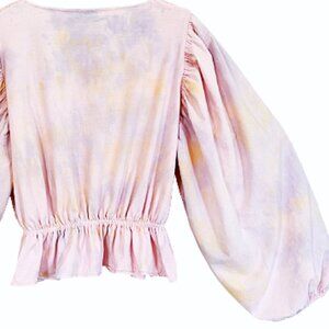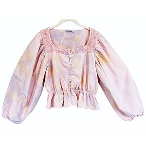 ZARA Tie-Dye Puff Sleeve Blouse M Pink Yellow Boho Peasant Top Bloggers Fave
