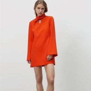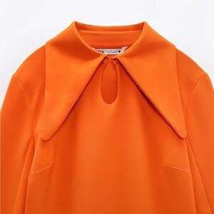 High collar with tied front opening. 63% polyester, 27% viscose, 7% cotton 3% elastane