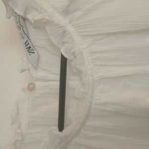 ZARA White Tiered Ruffle Embroidered Tunic