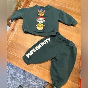 ZARA Toddler Paw Patrol Green Sweatsuit size 1 1/2 years 18M