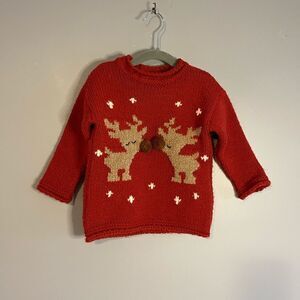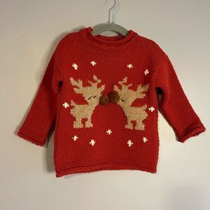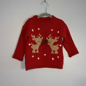 ZARA Toddler Reindeer Red Tan/Brown Sweater Winter Holiday | SZ 12-18 months