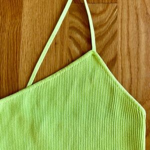 Stylish lime green ribbed tank top with an asymmetrical neckline. Stretchy sweater knit material. Size small. EUC
