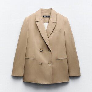 ZARA Topstitched Oversized Blazer In Taupe Brown NWT SZ M