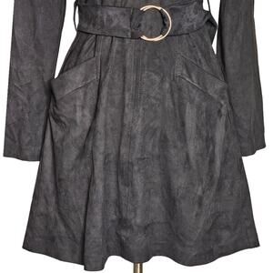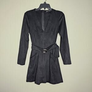 ZARA Trafaluc Black Faux Suede Belted Long Sleeve Dress in Black Size Small