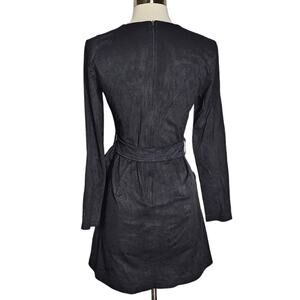 ZARA Trafaluc Black Vegan Suede Belted Long Sleeve Mini Dress
