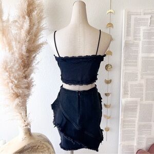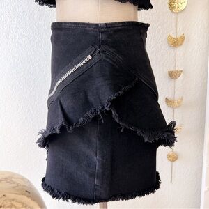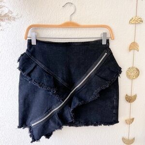 - ZARA Trafaluc Black Frayed Zipper Denim Mini Skirt