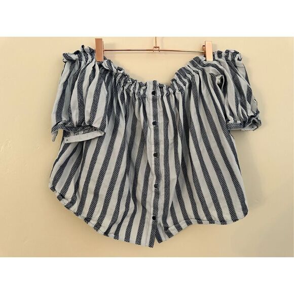 ZARA Trafaluc Blue and White Off The Shoulder Top Size Small