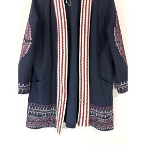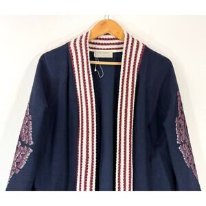 ZARA Trafaluc Boho Woven Open Front Cardigan Kimono Jacket Navy Cotton Size M
