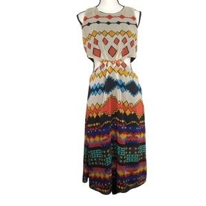 ZARA Trafaluc Collection Aztec Print Cut Out Midi Dress