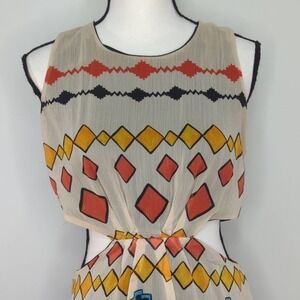 ZARA Trafaluc Collection Aztec Print Cut Out Midi Dress (LARGE)