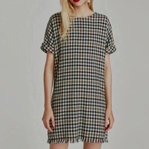 ZARA Trafaluc Collection Houndstooth Mini Dress Fringe Hem. Please see photos for indications of use and measurements.