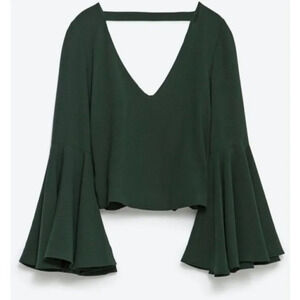 ZARA Trafaluc Dark Green Cropped Bell Sleeve Top