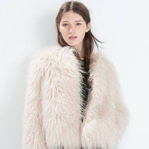 ๐ ZARA Trafaluc Shaggy Faux Fur Jacket โ Pale Pink โ Size M โ EXCELLENT ๐