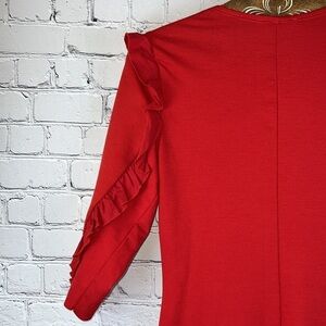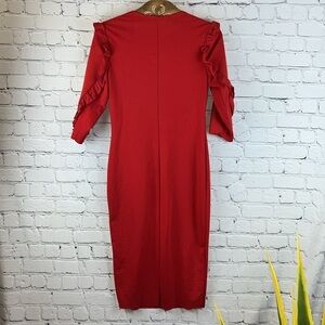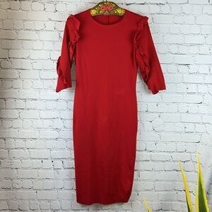 ZARA Trafaluc Ponte Di Roma Red Knit Dress with Shoulder Ruffle, Size M