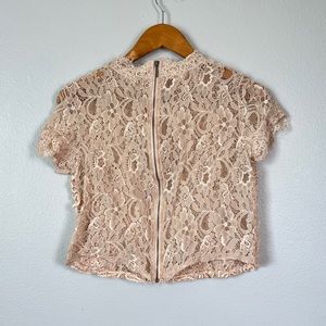 ZARA Trafaluc Rose Peach Pink Lace Crochet Embroidered Short Sleeve Top