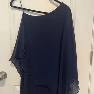 ZARA Trafaluc asymmetrical one shoulder blouse‎ medium navy blue
